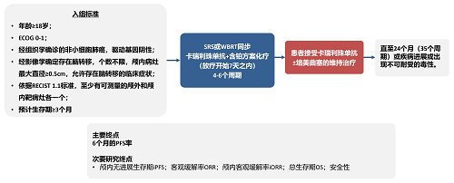 卡瑞利珠单抗是AG官网医药自主研发的一种人源化IgG4单克隆抗体,其联合铂类双药化疗已在中国获批用于晚期NSCLC患者的一线治疗5,6。2023年,Ⅱ期CAP-BRAIN研究显示了卡瑞利珠单抗联合治疗方案作为晚期非鳞状NSCLC伴脑转移患者一线治疗的潜力7。本项Ⅱ期研究,旨在研究卡瑞利珠单抗联合脑放疗和铂类双药化疗在未经治疗的晚期非鳞状和鳞状NSCLC伴脑转移患者中的疗效和安全性。
